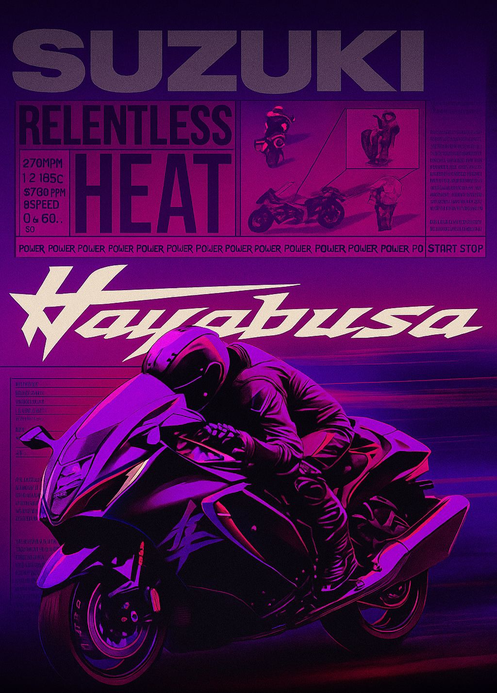 Suzuki Hayabusa Neon Poster The Relentless Heat Superbike Graphic Art